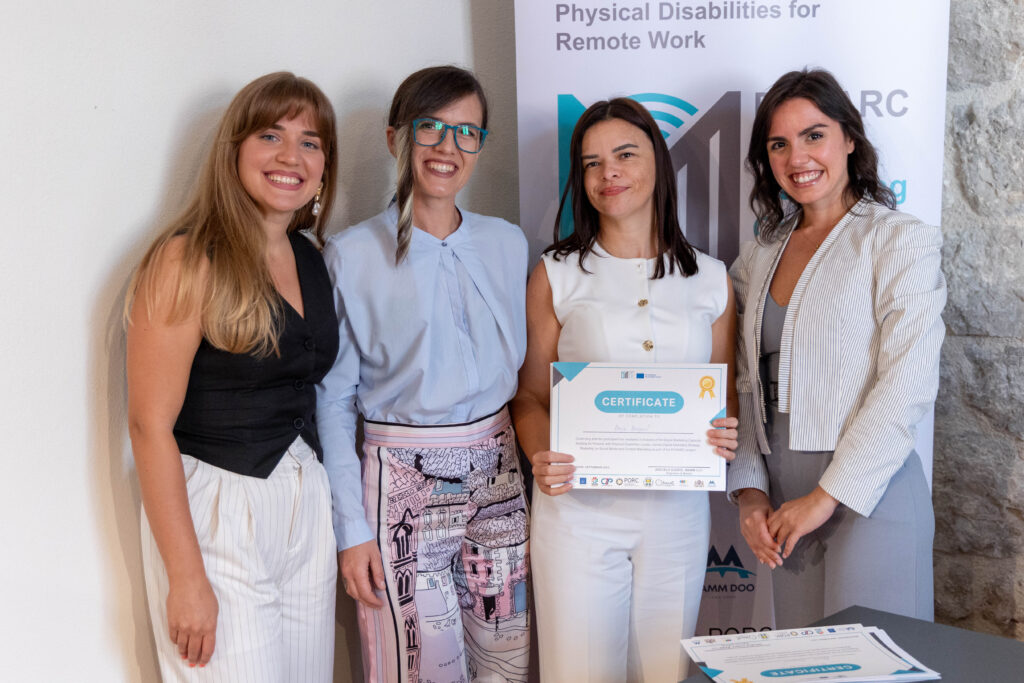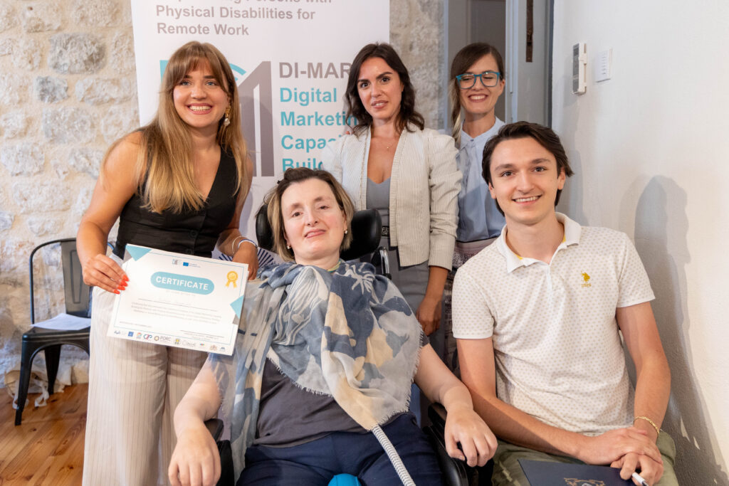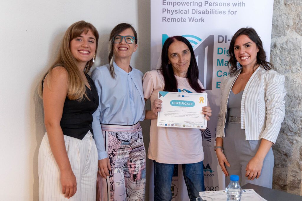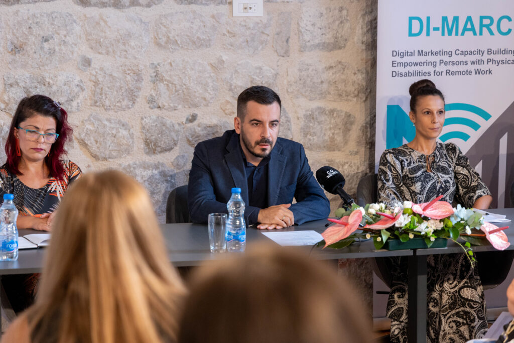 The final conference of the DI-MARC project (Digital Marketing Capacity Building – Empowering Persons with Physical Disabilities for Remote Work) for Montenegro was held on 09 September 2025 at the Creative Hub in Kotor. The event was dedicated to presenting the project’s results and to the official awarding of certificates to participants from Montenegro who successfully completed the online training in digital marketing.
